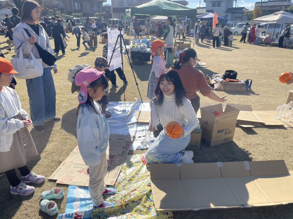 ブースには、こどもたちや親子連れが参加してくれて、倒したピンに応じて、お菓子をプレゼントしました🍪